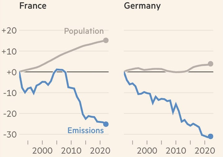 The Times’ Burn-Murdoch also points to progressives who’ve convinced themselves that bringing new humans into the world will accelerate climate change. However, he notes that any given country’s level of carbon emissions is overwhelmingly driven by technology, not population, as evidenced by plummeting carbon emissions throughout the developed world even as their populations have continued to rise.